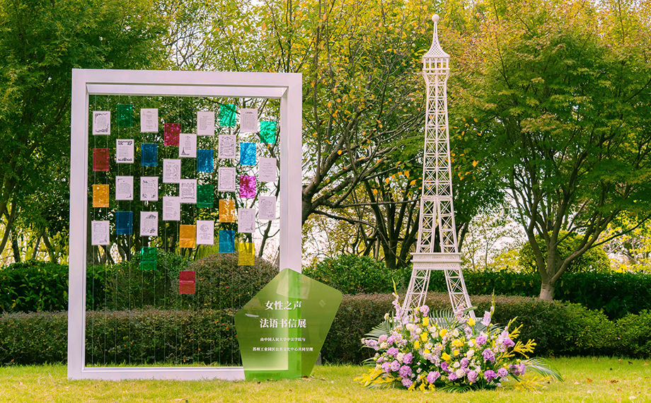 展覽區(qū)里,園區(qū)公共文化中心與中國人民大學(xué)中法學(xué)院攜手打造的“女性之聲”法語書信微展,用書法美學(xué)重構(gòu)法語語言魅力,將文字升華為視覺藝術(shù),呈現(xiàn)了別具韻律的線條之美。