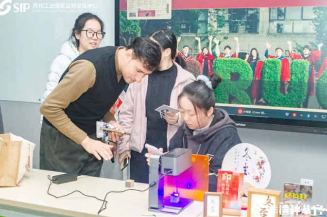冬至大如年,人間小團(tuán)圓。恰逢二十四節(jié)氣之一的冬至,活動(dòng)以這一傳統(tǒng)節(jié)氣為文化紐帶,依托“印記園區(qū)印向未來(lái)”蘇州工業(yè)園區(qū)大眾篆刻作品展的“新大眾文藝”實(shí)踐,為中外學(xué)子搭建起跨文化交流的橋梁——不同國(guó)籍的年輕人因非遺相聚,在大眾篆刻的藝術(shù)形式下感受中華優(yōu)秀傳統(tǒng)文化的當(dāng)代生命力。