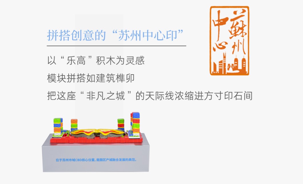 “篆刻是在方寸之間去創(chuàng)造一個世界,建筑則是在天地之間去雕刻一枚印章?!眴⒌显O(shè)計集團建筑師張筠之帶來了用樂高積木搭建的《蘇州中心》印章。這件充滿童真與趣味的作品,用五彩的積木堆疊出園區(qū)的活力、青春與探索精神。在她看來,園區(qū)本身就是一幅宏偉的時代畫卷,每一座錯落起伏的建筑,都是深深印刻在這片土地上的印章,鐫刻著時代的價值觀與審美,成為留給后人的文化記憶。