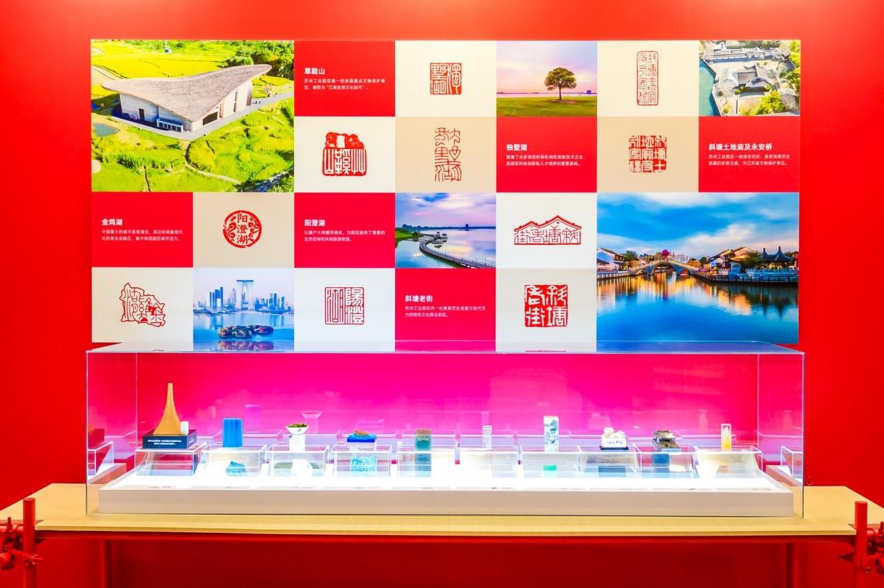 在“印記園區(qū)”部分,94枚全新創(chuàng)作的印章形成“領(lǐng)航擘畫”“志合山?!薄皡秋L(fēng)湖韻”“勇立潮頭”“盛世江南”五大篇章,立體勾勒了園區(qū)的驚艷蝶變。其中,《發(fā)揮試驗示范作用》印章以DNA雙螺旋結(jié)構(gòu)象征生物醫(yī)藥、芯片造型代表人工智能,并結(jié)合碳納米六邊形的造型,將園區(qū)三大特色產(chǎn)業(yè)精準呈現(xiàn);《鄰里中心》印章通過可轉(zhuǎn)動的設(shè)計,生動詮釋了社區(qū)共生、活力多元的園區(qū)生活理念;《金雞湖》作品中澄澈水體與印石相映成趣,成為生態(tài)園區(qū)最詩意的見證。