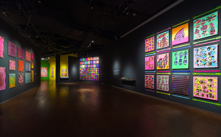 本次展覽以剪紙創(chuàng)作流程為主線,通過“起稿、上色、對折、剪刻、展開、拼組”六個步驟,系統(tǒng)呈現(xiàn)從構(gòu)思到成品的完整藝術(shù)生產(chǎn)脈絡(luò):起稿,靈感源自生活觀察,形成原創(chuàng)視覺文本;上色,運(yùn)用高對比色彩體系,塑造強(qiáng)烈視覺個性;對折,借助對稱形式,隱喻人際與自我關(guān)系,剪刻,通過剪與留的取舍,體現(xiàn)減法創(chuàng)作哲學(xué);展開,結(jié)合技術(shù)手段,釋放符號的當(dāng)代意義;拼組,重組碎片完成敘事閉環(huán),實(shí)現(xiàn)跨媒介轉(zhuǎn)換。