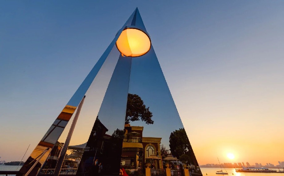 一處是潮流前衛(wèi)的光影對(duì)話(huà),一處是東方雅致的意境營(yíng)造,兩處鏡面藝術(shù)裝置的亮相,既是園區(qū)公共藝術(shù)創(chuàng)新實(shí)踐的生動(dòng)體現(xiàn),更彰顯了園區(qū)“國(guó)際范”與“江南韻”雙向奔赴的城市氣質(zhì),讓市民游客能沉浸式感受城市與藝術(shù)共生、自然與人文交融的獨(dú)特魅力。