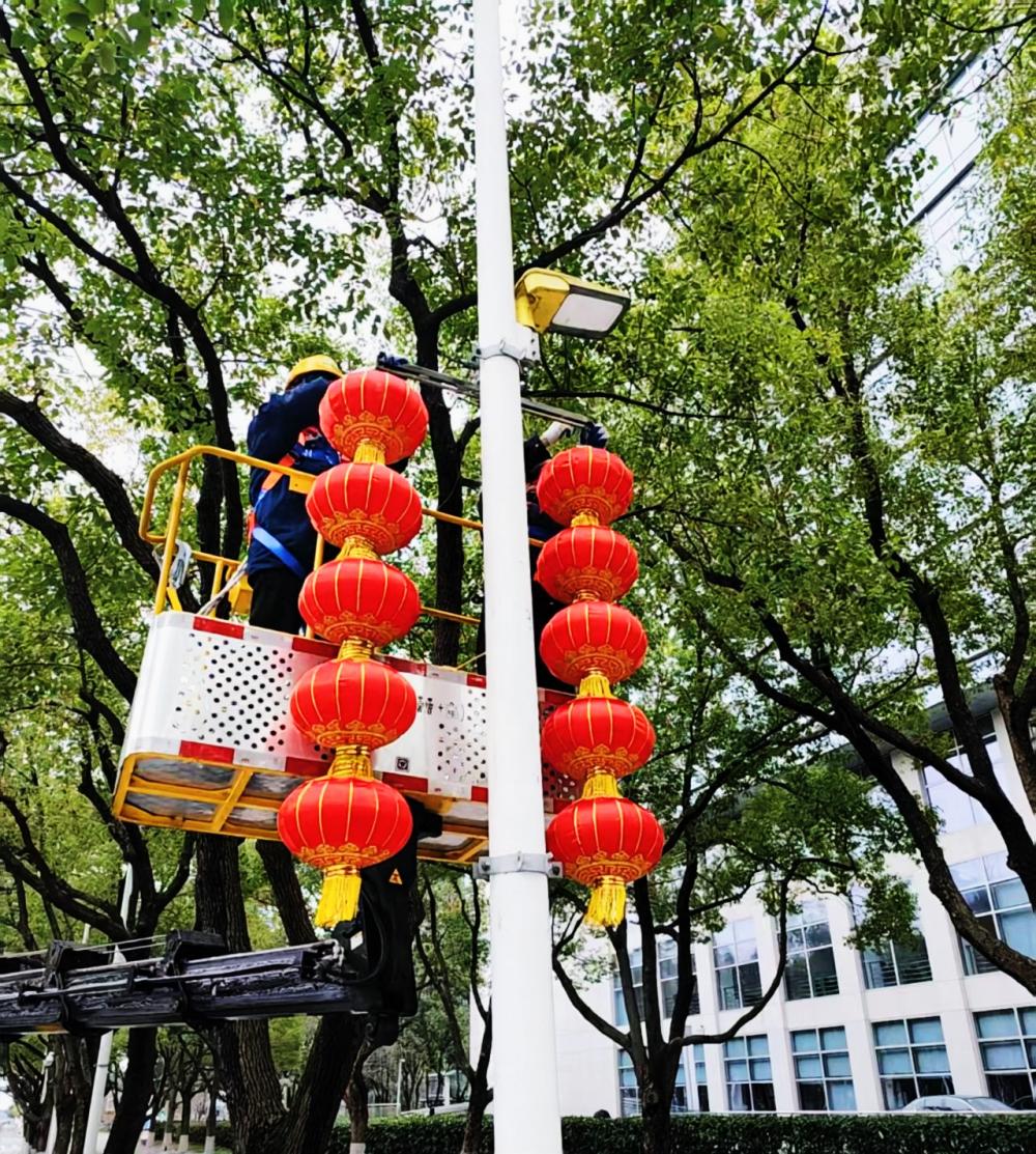 一抹抹亮眼的“中國(guó)紅”,是新春最濃郁的底色。為烘托街頭年味,市政集團(tuán)推進(jìn)重點(diǎn)區(qū)域燈籠懸掛工作,將湖東行政中心周邊的蘇州大道、金琚路、圓融環(huán)路列為核心布置區(qū)域,3960只大紅燈籠在道路兩旁路燈桿上亮相,一盞盞紅燈籠錯(cuò)落有致、迎風(fēng)搖曳,勾勒出喜慶的城市輪廓,成為街頭一道靚麗的風(fēng)景線,讓馬年新春的氛圍感拉滿。