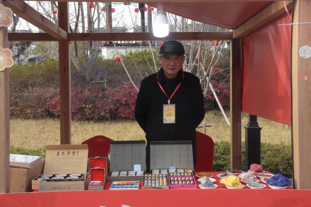 “這是藍銅礦,《千里江山圖》的青綠就是源自這種礦石。這是青金石、朱砂、瑪瑙、貝殼、藤黃、珊瑚、胭脂蟲……有些是礦物原料,有些是動物原料,蓼藍草等則是植物原料。”在“非遺賀新春——古城過大年”全國主會場活動暨蘇州古城過大年系列活動的展示現場,姜思序堂國畫顏料制作技藝非遺代表性傳承人張佰林正熱情地向圍觀的市民游客介紹著各色顏料的原材料。