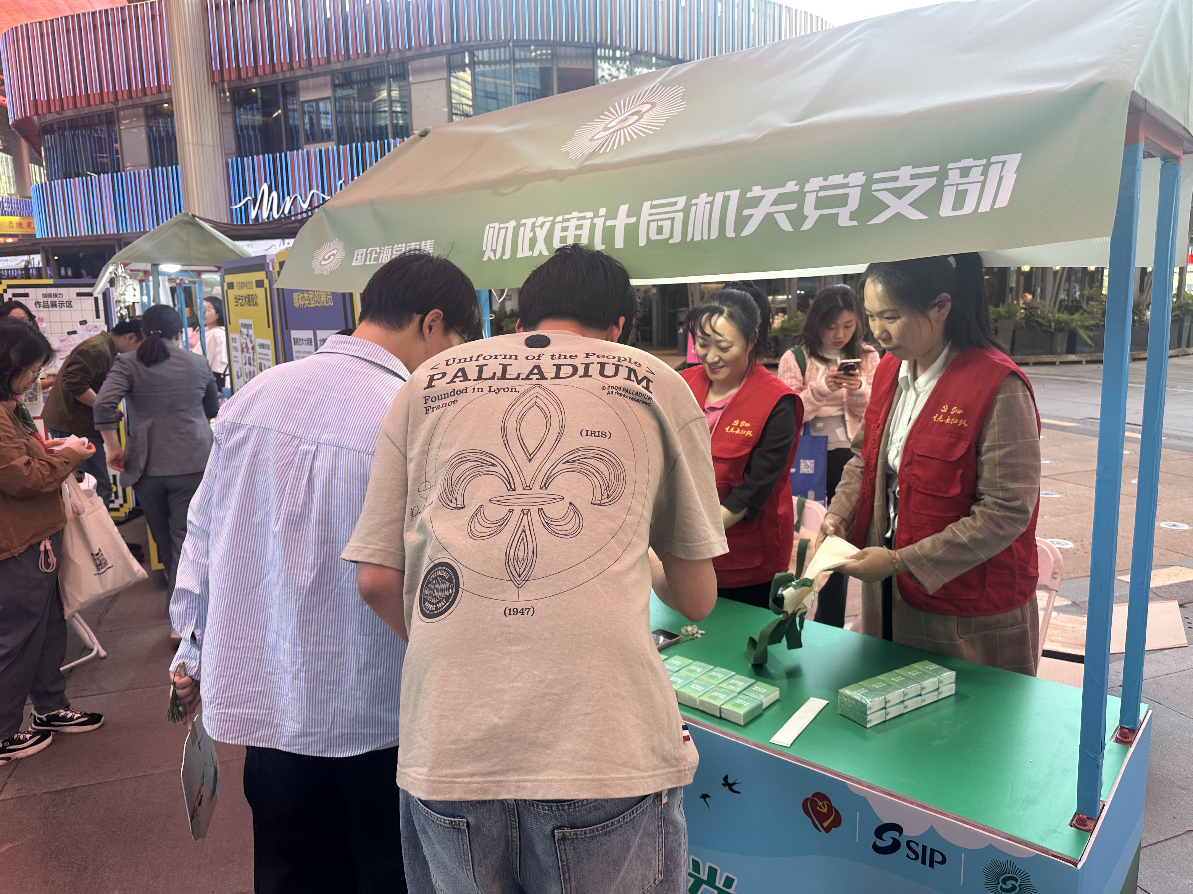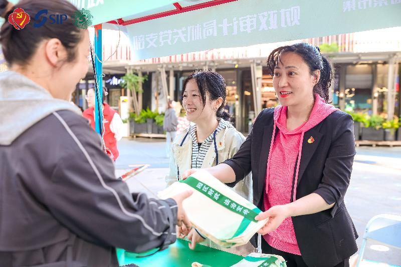 4月25日,“海棠市集”黨群服務活動春季篇首場在圓融時代廣場東街盛大啟幕,園區財政審計局機關支部在現場開展會計專業技術人員繼續教育宣傳,以財審先鋒志愿服務為這場活動增添了別樣的色彩。