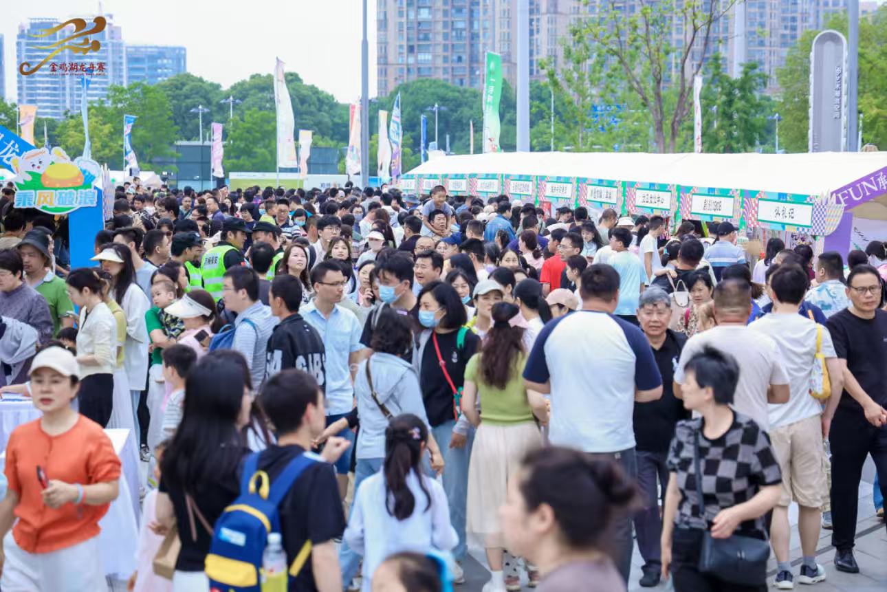 賽場周邊,“華夏同心集”熱鬧開市,“FUN承非遺”金雞湖龍船市60+非遺文化體驗(yàn)、688藝術(shù)潮流公園市集、“龍舟有好市”民族美食市集,帶來200+寶藏?cái)偽坏姆欠搀w驗(yàn),吸引大量市民游客駐足。“科技龍舟體驗(yàn)展區(qū)”帶你穿越未來,智能飛行汽車蘇州首秀,腦機(jī)意念黑科技、VR龍舟競速、AI龍舟畫展,傳統(tǒng)龍舟秒變科技大片現(xiàn)場。