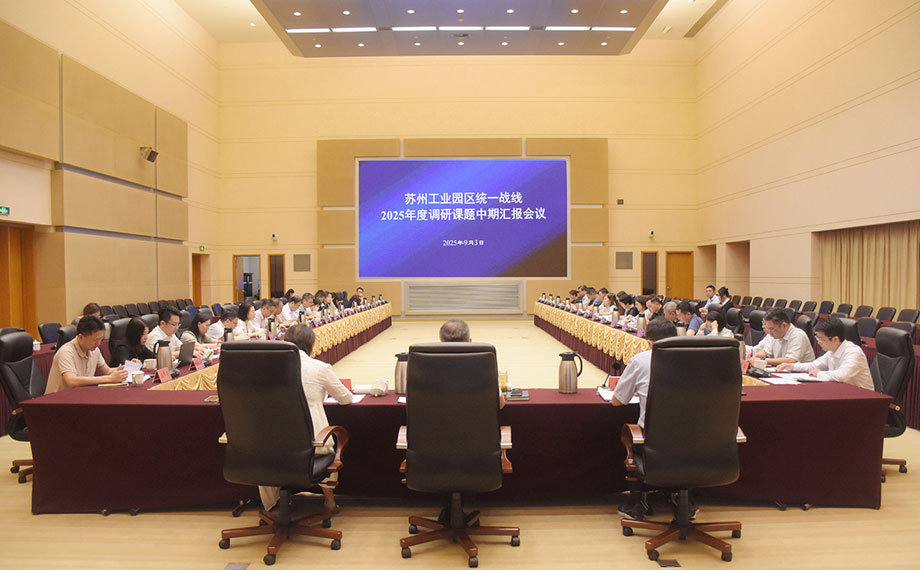 9月3日下午,蘇州工業園區統一戰線2025年度調研課題中期匯報會召開。會議通報園區上半年經濟社會發展情況,搭建面對面交流平臺,助推各民主黨派、統戰團體深入調研、精準議政,為共同推進園區高質量發展貢獻更多統戰智慧。