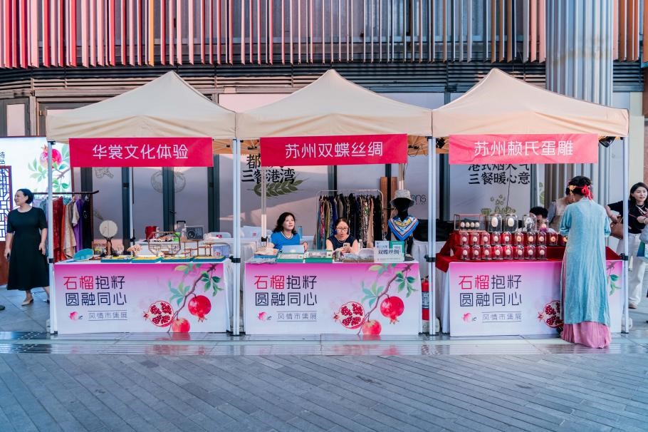 圍繞各民族不同的美食和文化,此次風(fēng)情市集設(shè)置了三大特色展區(qū):美食區(qū)匯聚了蘇式糕點(diǎn)、潮汕菜、新疆干果等各地美食,讓市民在舌尖上感受民族風(fēng)情;服飾區(qū)展示了旗袍、漢服、絲綢、水鄉(xiāng)服等傳統(tǒng)服飾,并設(shè)有專業(yè)講解和互動(dòng)體驗(yàn);手工藝品區(qū)展出了蛋雕、手工編、緙絲等精美工藝品,搭配漆扇制作等手工體驗(yàn),深受市民喜愛。