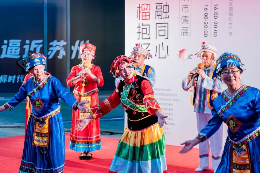 活動(dòng)中,文藝演出精彩不斷。民族舞《金雞湖之歌》以優(yōu)美的舞姿展現(xiàn)了園區(qū)開放包容的精神風(fēng)貌;雙人評(píng)彈《蘇州好風(fēng)光》則用吳儂軟語演繹了江南文化的獨(dú)特魅力。市集期間,另有《美麗新疆》《阿瓦人民唱新歌》《罐舞傣靈》等七場(chǎng)特色民族舞蹈與樂器表演輪番上演,為觀眾呈現(xiàn)了一場(chǎng)跨越地域的民族藝術(shù)盛宴。