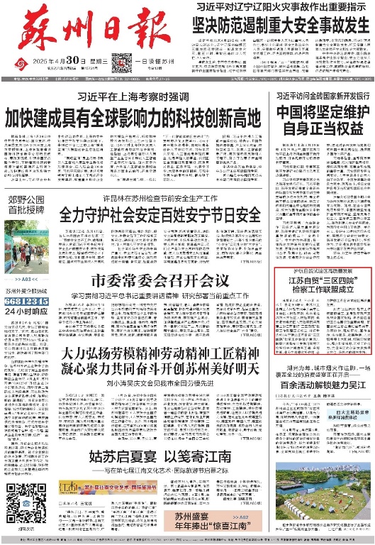 《蘇州日?qǐng)?bào)》2025年04月30日A01版