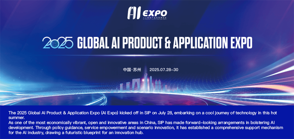 The 2025 AI Expo kicked off at the Suzhou International Expo Centre in SIP on July 28. Wang Jiangping, former vice minister of industry and information technology, Gao Wen, an academician at the Chinese Academy of Engineering and president of the council of A New Generation of Artificial Intelligence Technology Innovation Strategic Alliance, and Wu Qingwen, deputy secretary of the CPC Suzhou Committee and mayor of Suzhou, attended the opening ceremony.