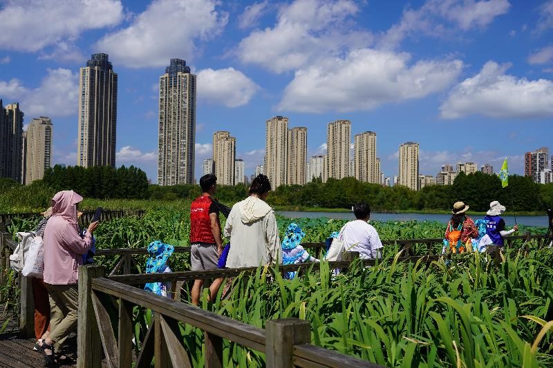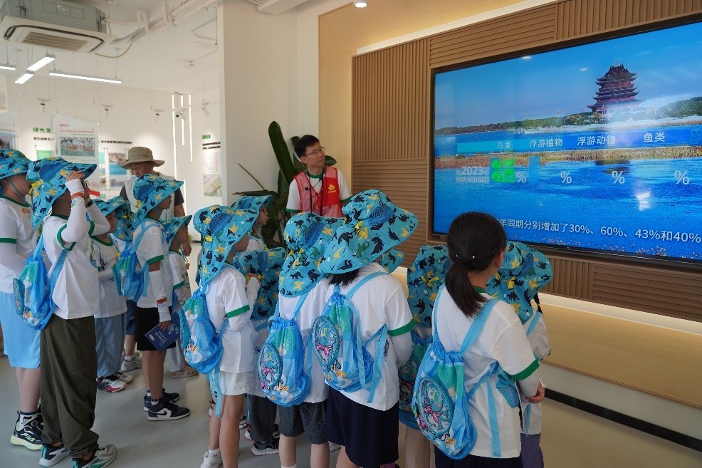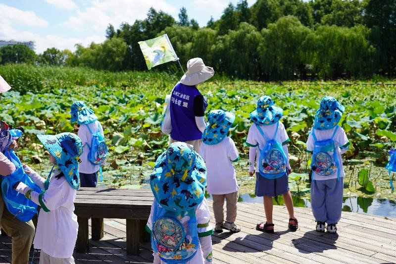 In the event held in SIP on Aug 15 to mark the National Ecology Day, 20 families comprising children aged between 5 and 12 and their parents made a tour to Dongsha Lake to learn about nature and ecological civilization.