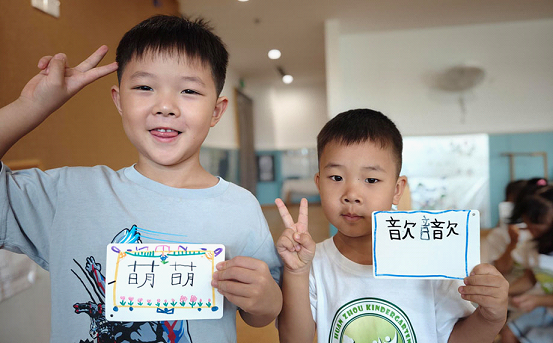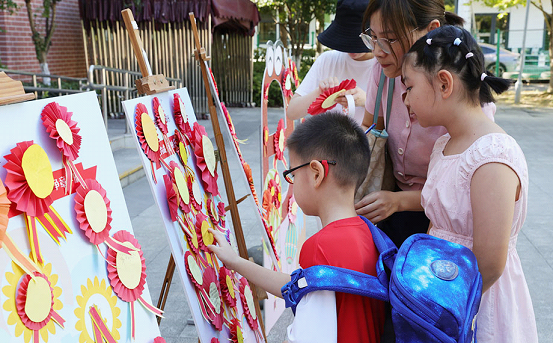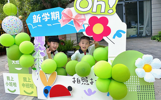 The Hualin Kindergarten’s branch at Gaohe Road was decorated with colorful balloons and paper installations to help the younger children get relaxed on the first day of kindergarten, and organized a “first writing ceremony” for older kids.