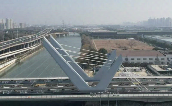 The north extension of Xinghan Street came into service last May. It is an about 400-meter-long two-way, four-lane road section between Loujiang Road and Suhong Road, including a 76-meter steel bridge across Loujiang River.