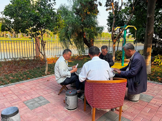 Several months ago, through meetings, the residents voiced needs like “a space for chess”, “safe play areas for children” and “wider, non-slip paths”. Now, the park features convenient hooks, chess tables with embedded reading glasses cases, and sturdy stone-paved walkways.