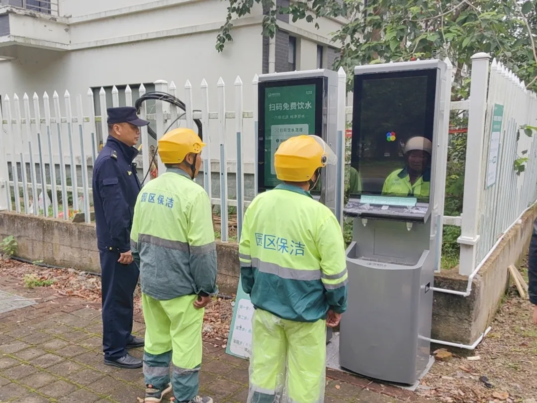 為確保戶外工作者隨時都能享受到溫度適宜的飲用水,街道綜合執法大隊聯合轄區社區細心設置公益飲水設備,為一線環衛工人、快遞小哥和市民群眾等送去溫暖與保障。市民群眾在享用便民服務的同時,還可通過掃碼接水觀看垃圾分類短片,加深對垃圾分類工作的認知度,帶動更多的社會力量參與到垃圾分類的行動中來。