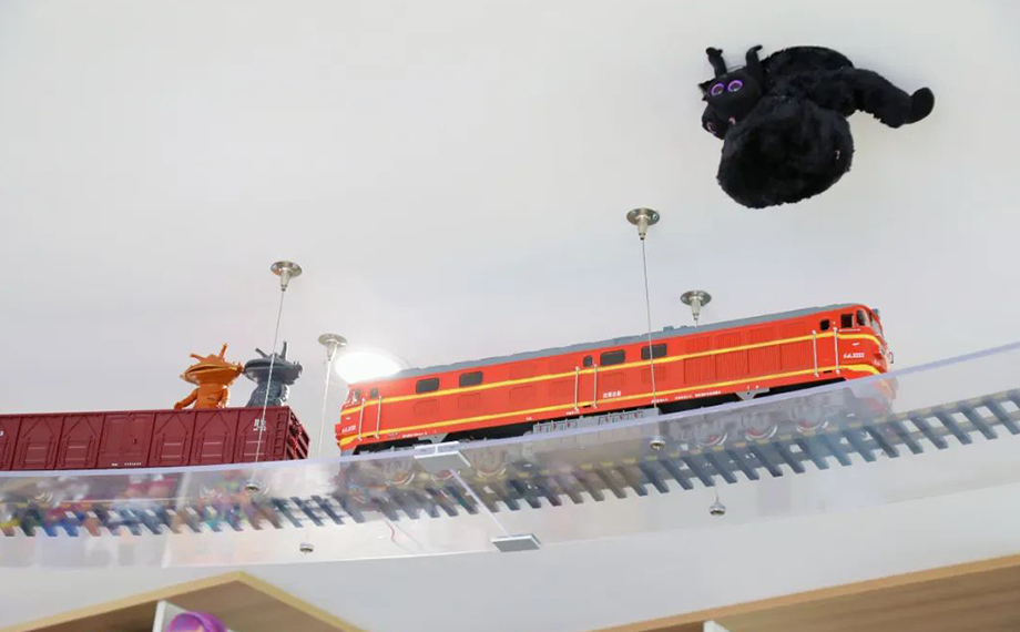 蘇玩博本次的升級,不僅將原本的二樓打造為被藏品填滿的藝術空間,還對一樓進行了特別改造。踏入博物館那一刻記得抬頭看:嘟嘟!“天花板火車”發車啦,前方到站:陽澄湖半島站?;疖囇芈愤€將偶遇眾多小動物。