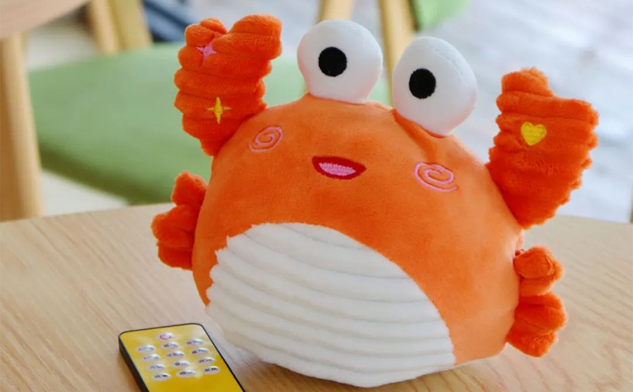 除了館藏上萬件玩具之外,蘇玩博還特別推出文創產品。鐵皮青蛙樣式的發條玩具彩豆糖首次亮相,玩玩具+吃糖果一次性滿足。陽澄湖大閘蟹玩偶萌趣十足,你還可以手動遙控玩偶,聽大閘蟹讀古詩或講故事。