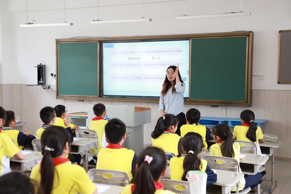 勝浦實驗小學趙敏芳老師執教《分數乘整數》一課,通過創設“制作綢花”的情境,引導學生理解分數乘整數的意義與算理。教學中,趙老師鼓勵學生自主探索,借助畫圖、算式和文字說明等多種方法驗證算法,并對比整數、小數乘法的共性,深化對乘法算理一致性的認識。課堂注重學生實踐與思考,層層遞進,既鞏固了計算方法,又培養了數學遷移能力,充分體現了新課標的核心素養要求。