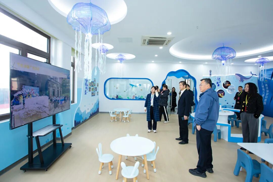 調(diào)研組首先來到時(shí)代上城南社區(qū)聽取兒童友好社區(qū)工作情況匯報(bào)。時(shí)代上城南社區(qū)通過打造“時(shí)上少兒成長站”兒童參與式的友好服務(wù)陣地,圍繞“童育、童護(hù)、童益、童樂、童享”五大主題開展特色活動(dòng),護(hù)航未成年人全面發(fā)展。在參觀“時(shí)代上城南兒童友好海洋保護(hù)科普館”時(shí),調(diào)研組對(duì)街道圍繞兒童實(shí)際需求,開展系列服務(wù)活動(dòng)表示充分肯定,指出相關(guān)舉措有效優(yōu)化了兒童成長環(huán)境,切實(shí)保障兒童權(quán)益,體現(xiàn)了街道在社區(qū)治理中的溫度與創(chuàng)新。